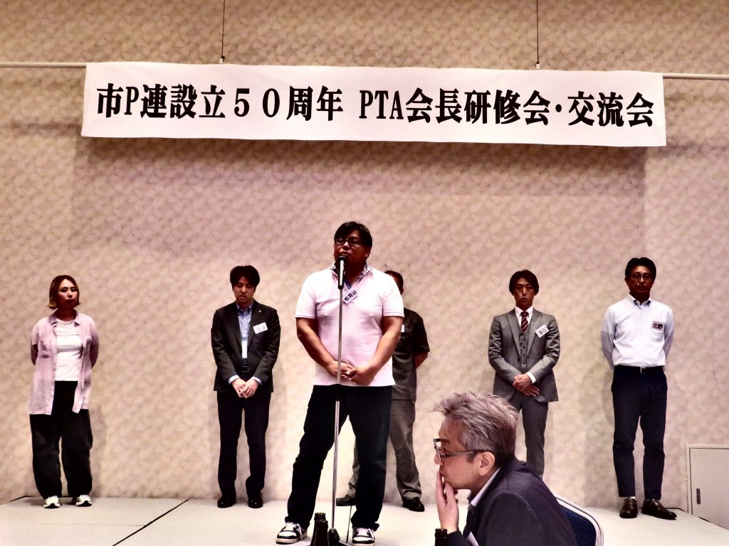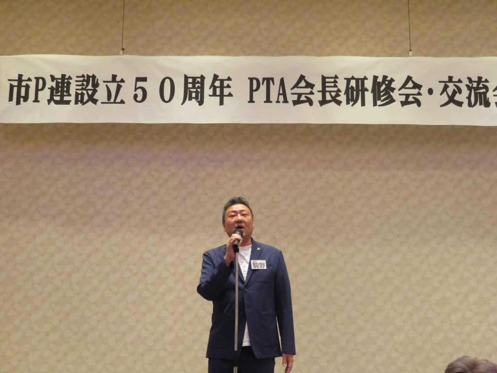 研修の部では秋山会長が 「PTA活動と会長の役割について」と題して、PTAという組織について、単Pの活動と会長の役割や心構えや、会員の皆さまに市P連事業への参加を呼び掛けてほしいことが話されました。